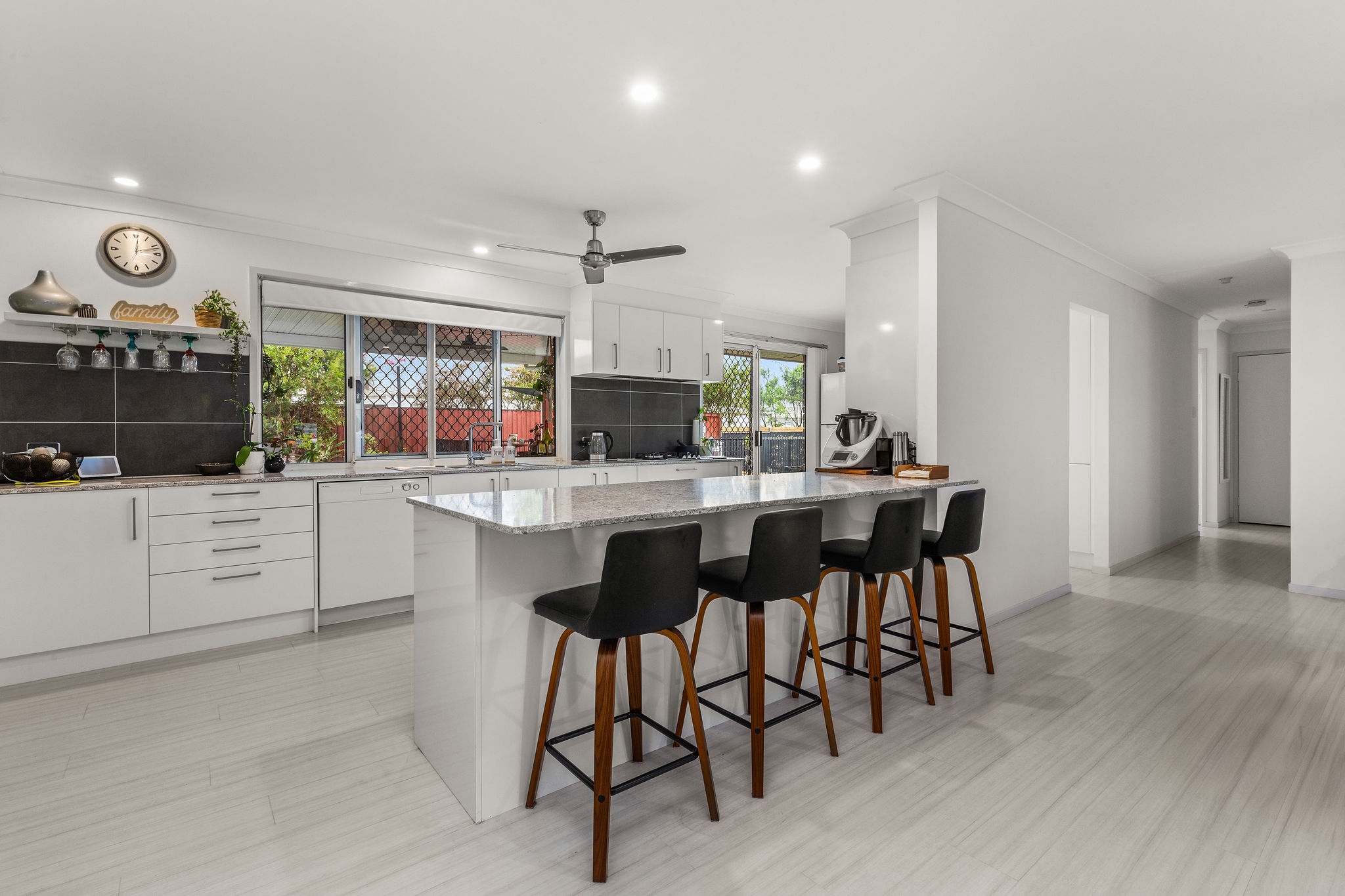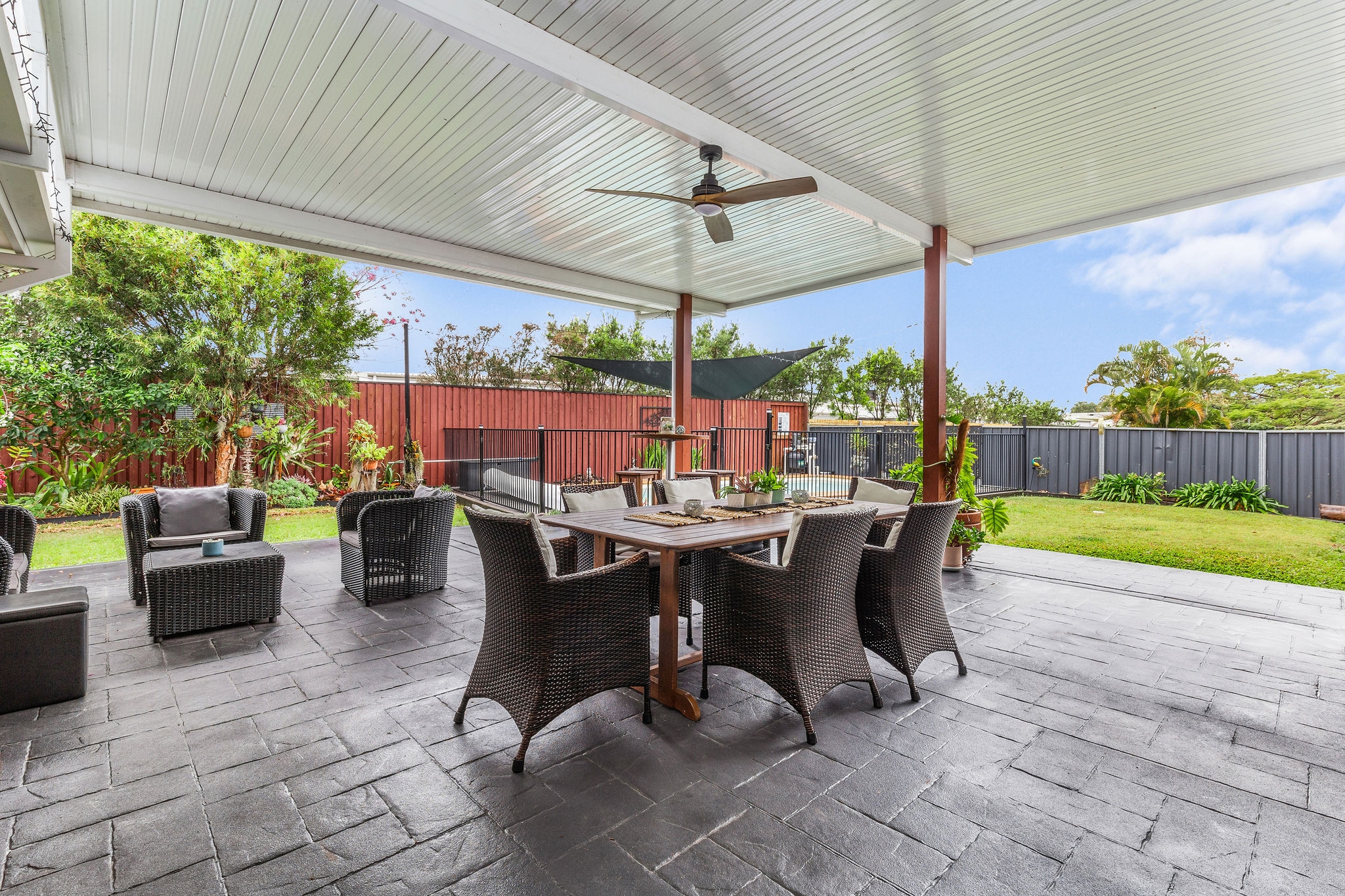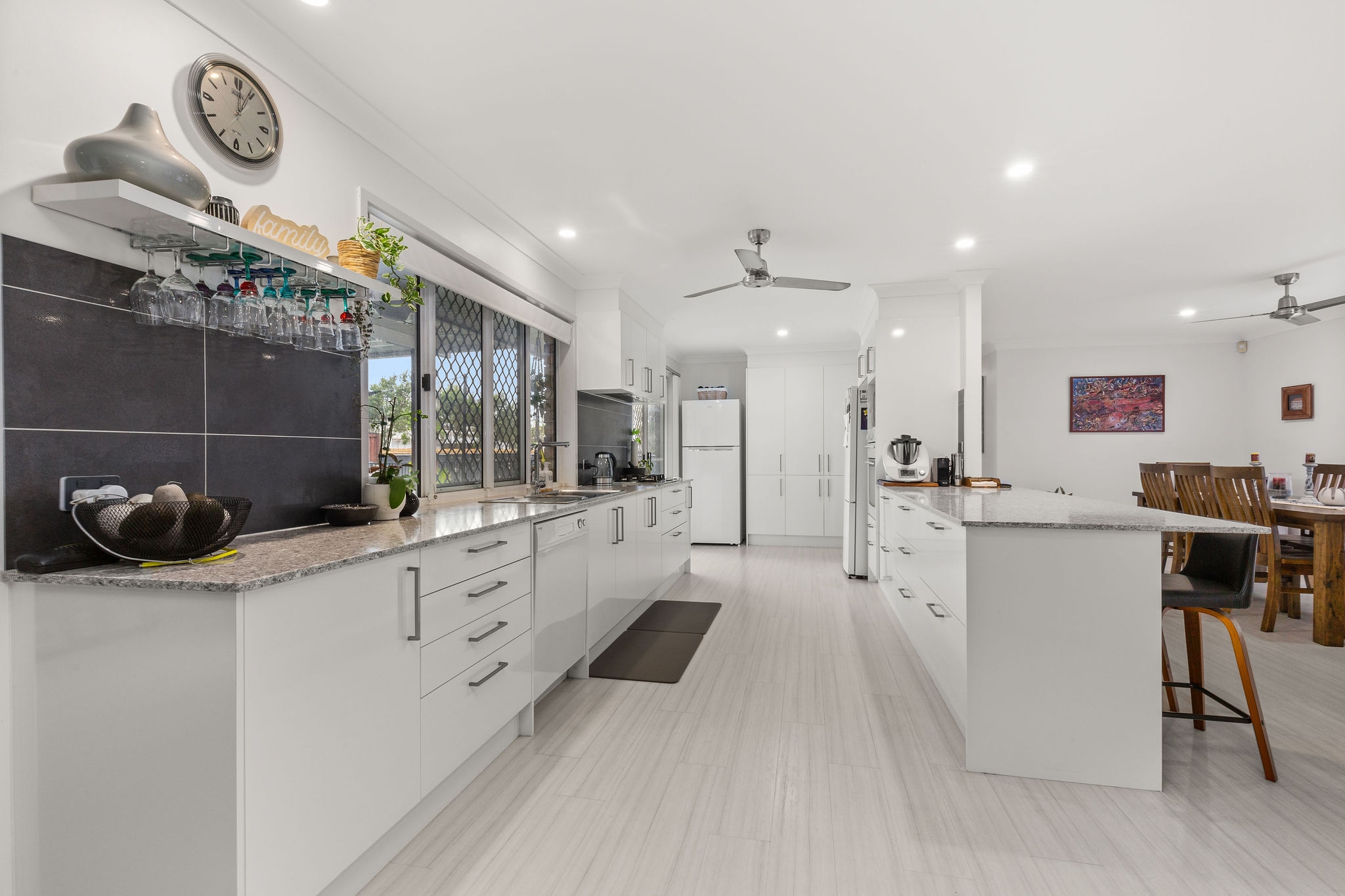 This stunning 4-bedroom, 3-bathroom home offers a lifestyle that’s both inviting and practical. At the heart of this home lies the renovated central kitchen—a hub that connects seamlessly with both the dining room and the lounge. Imagine preparing meals while chatting with family or friends gathered in these adjoining spaces all whilst keeping an eye on the kids playing in the backyard or in-ground pool. But that’s not all! Beyond the lounge, you’ll find a spacious rumpus/family room. This generous space invites creativity—it can be your home theater, playroom, or even a home office. The opportunities are endless! Leading directly from the kitchen and dining room is a huge and private entertaining area linked beautifully by a large servery window, presenting the ultimate in year round living.
