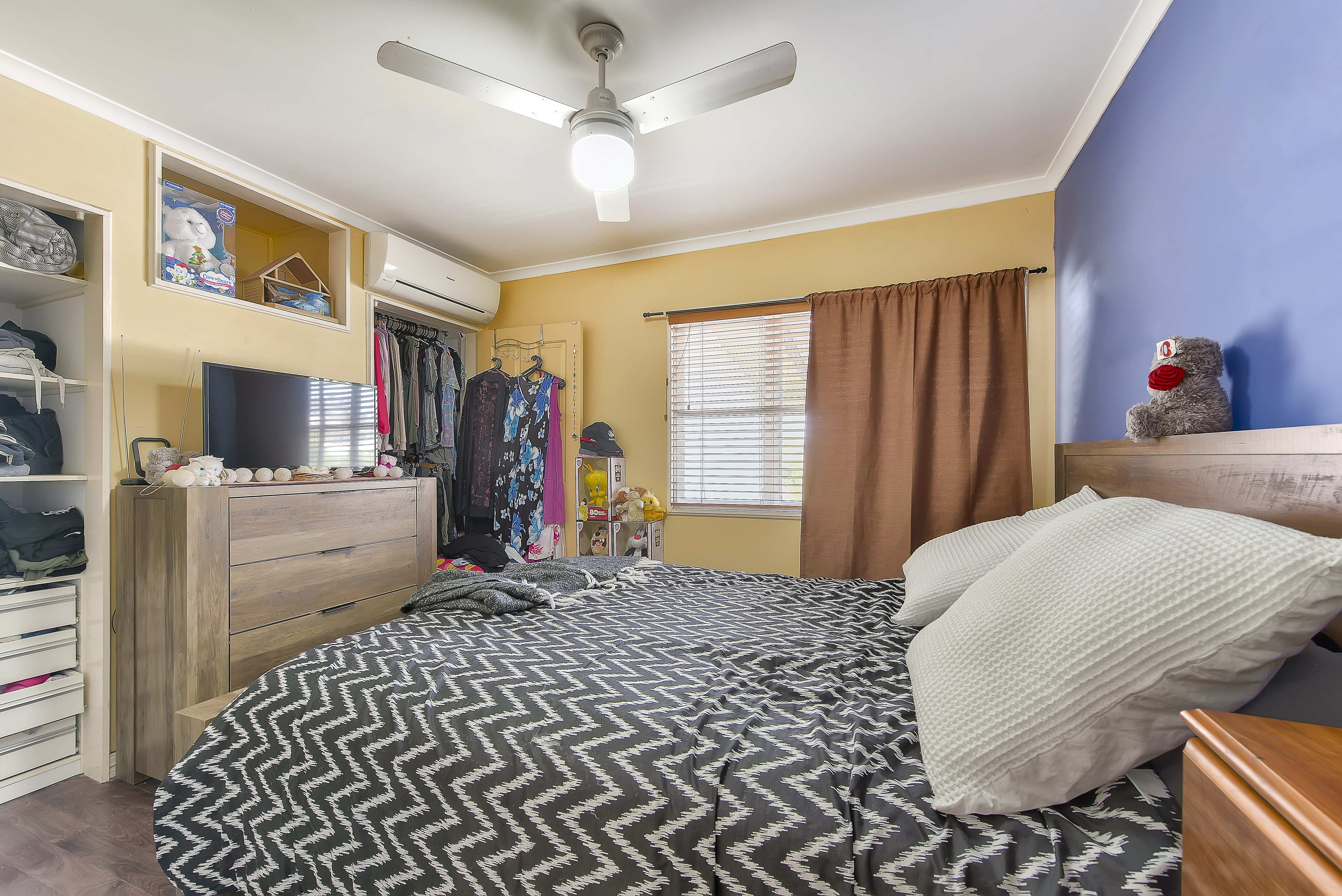 The air-conditioned living and dining areas provide comfort year-round, while two of the bedrooms are equipped with built-in wardrobes and air conditioning. At the front of the home, the front balcony is the perfect place to enjoy the serene outlook, while the north-facing rear boasts a covered deck for outdoor entertaining.