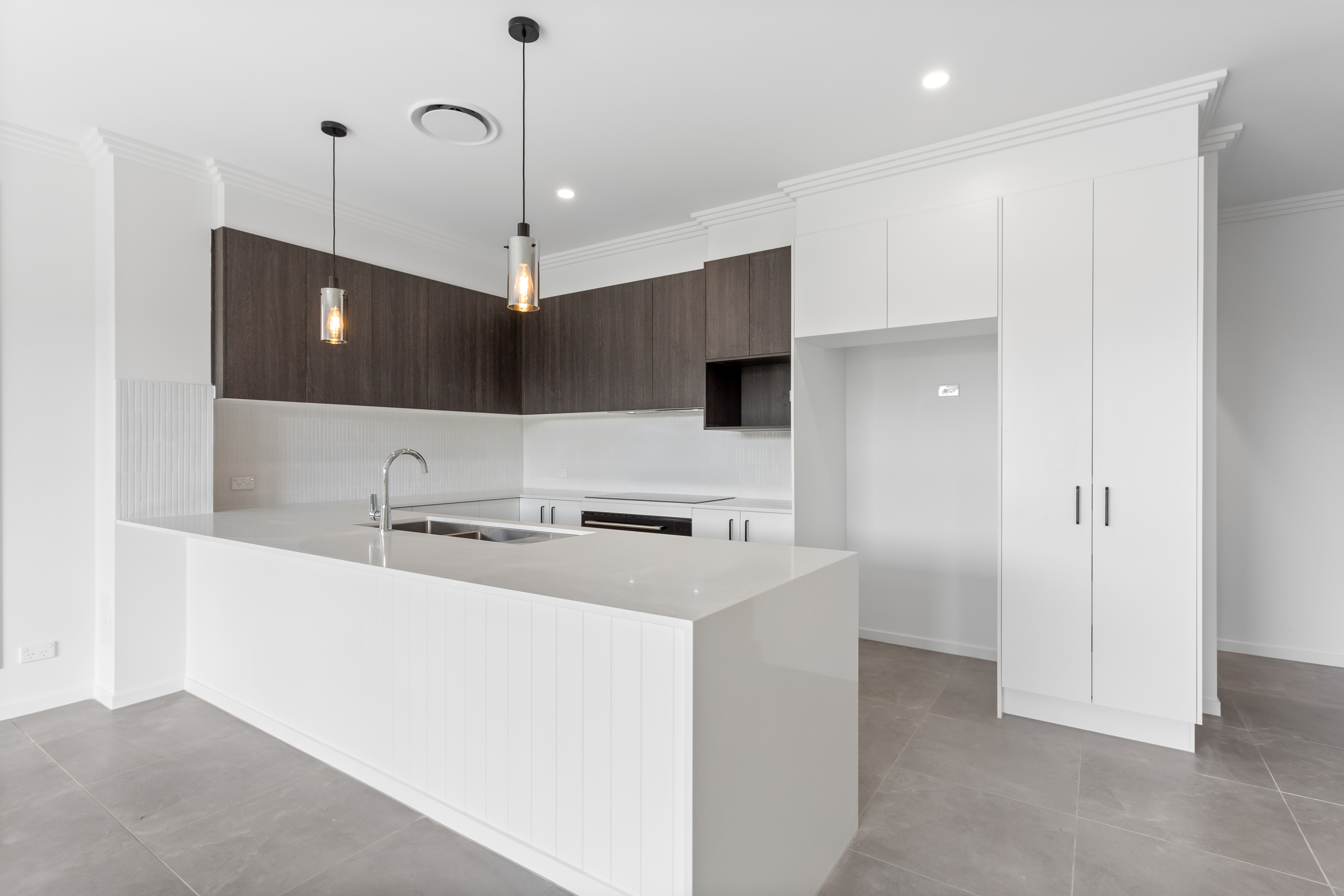 10. Full cabinetry kitchen with stone benchtops and tiled splashback